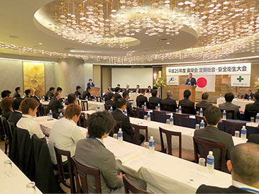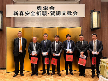 奥栄会では、毎年1月に安全祈願祭、6月に安全大会・総会、さらに毎月災害防止協議会を開催し、安全に対する意識の高揚に努めています。